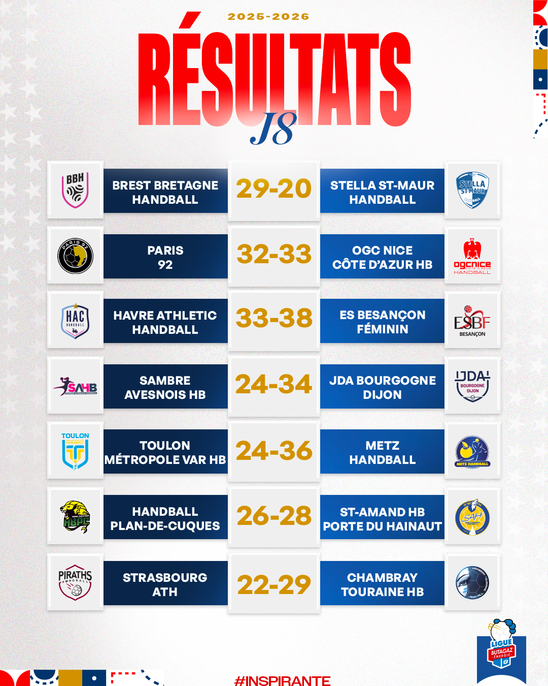 [J8] Six succès à l’extérieur, tous Les résultats de la huitième journée de la Ligue Butagaz Énergie !