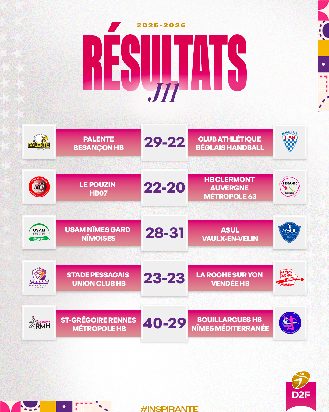 Grâce à cette troisième victoire sur ses quatre rencontres disputées en 2026, qui plus est face au leader clermontois, seule et unique équipe encore invaincue avant la rencontre, Le Pouzin HB07 s’installe au 6e rang, à quatre points seulement du podium. Les Clermontoises conservent quant à elles leur place en tête.