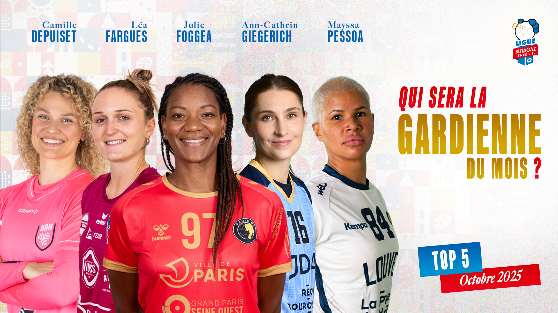 Alors que la Ligue Féminine de Handball lançait, au mois de septembre, la Gardienne du Mois, un nouveau titre mettant en lumière les performances des gardiennes des clubs de Ligue Butagaz Énergie, le moment est venu de découvrir les Highlights du Top 5 des meilleures gardiennes du mois d’octobre sur HandballTV, avec leurs plus belles actions en vidéo :