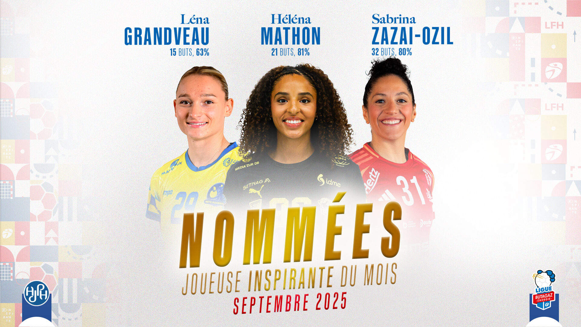 Alors que les rencontres de Ligue Butagaz Énergie s’enchaînent, la Ligue Féminine de Handball reconduit le « Trophée de la Joueuse Inspirante », récompensant la meilleure joueuse de chaque mois. Pour ce mois de septembre, un comité de sélection regroupant des membres de la direction technique nationale, de la LFH, de l’AJPH, de beIN et de HandballTV, dévoile les trois joueuses nommées pour ce premier trophée de l’exercice 2025-26.