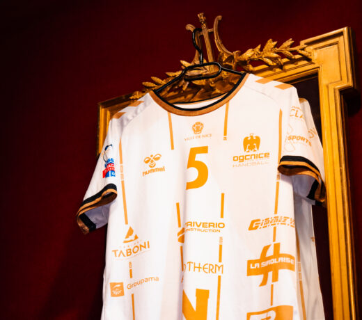 Notre maillot blanc et or incarne pleinement l’identité et l’histoire de l’OGC Nice Handball.
