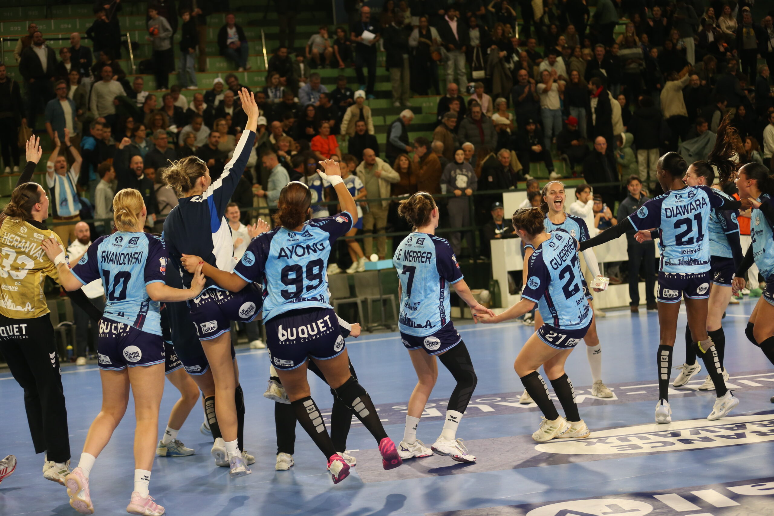 En tête durant la majeure partie du match et imperturbables dans le money-time, les joueuses, au même titre que l’ensemble du staff, ont laissé exploser leur joie au coup de sifflet final. Un soulagement pour la capitaine Lucile Roche, au micro de beIN Sports : « Le match était si long… On a galéré. Ça faisait longtemps que l’on n’avait pas fait de photo de victoire, et on ne savait même plus comment faire ! ».
